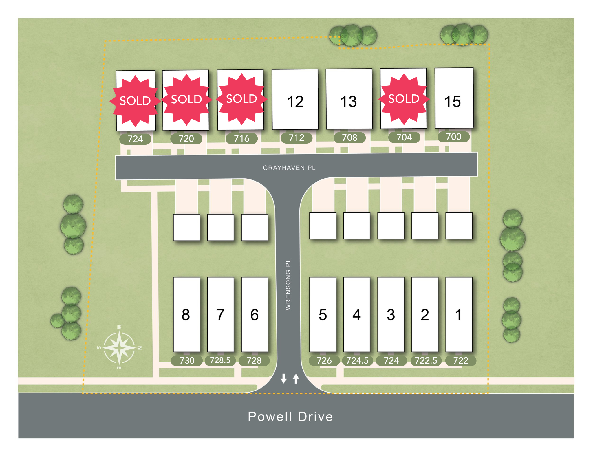 Fifteen carefully designed homes located off Powell Drive in West Raleigh.